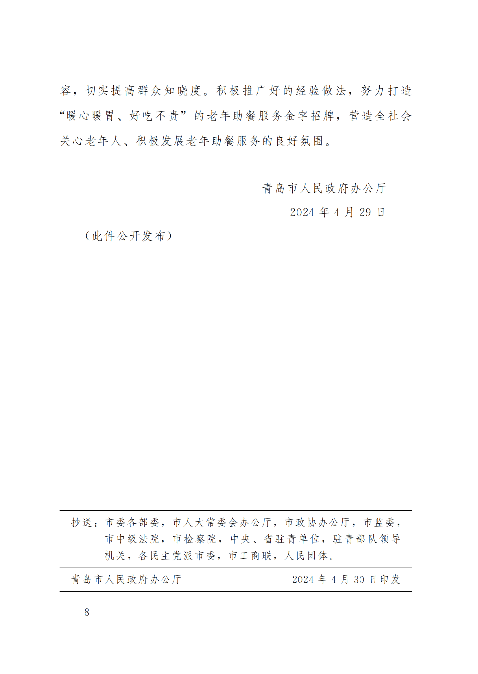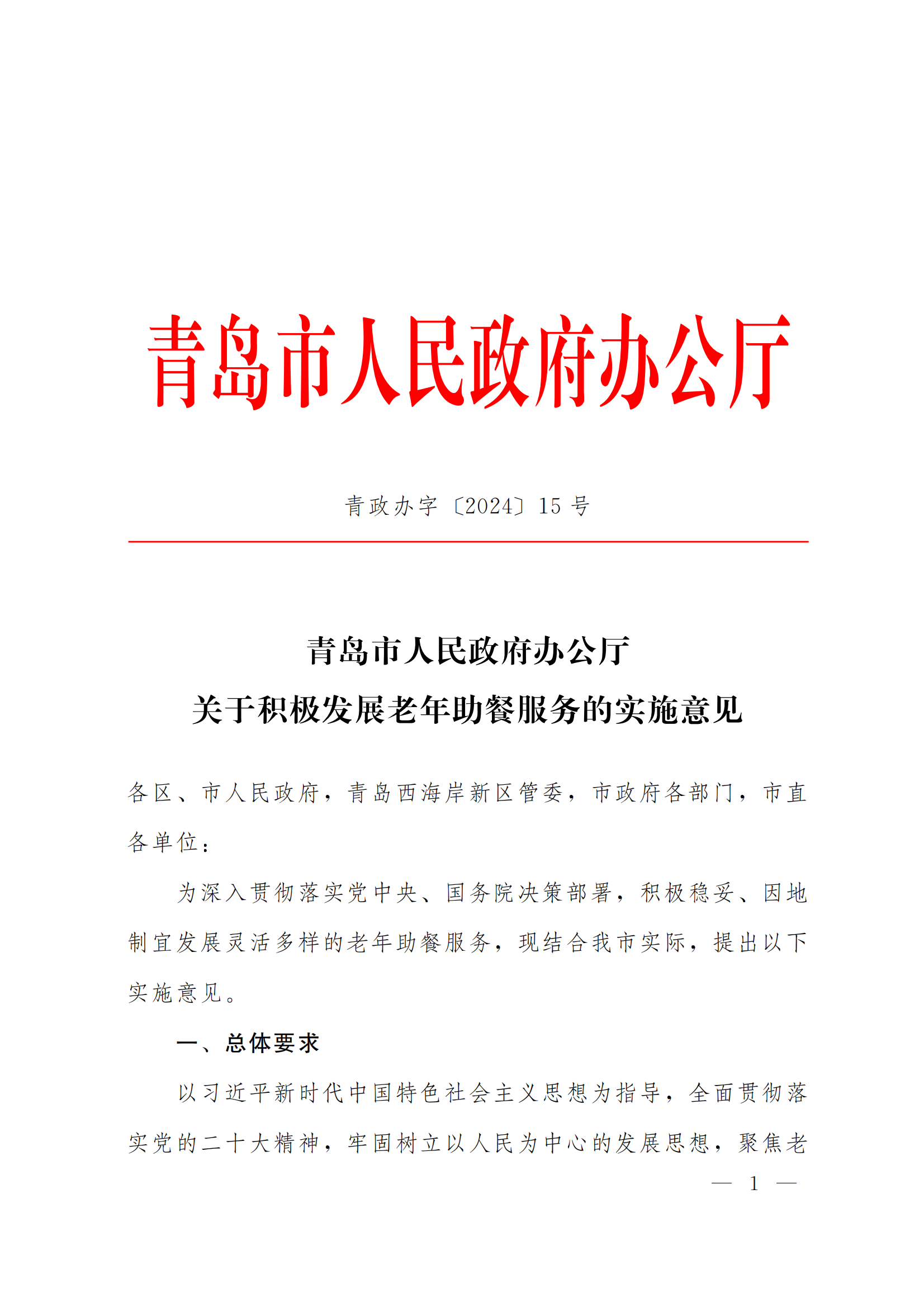附件1:青政辦字[2024]15號《青島市人民政府辦公廳關(guān)于積極發(fā)展老年助餐服務的實施意見》.pdf
