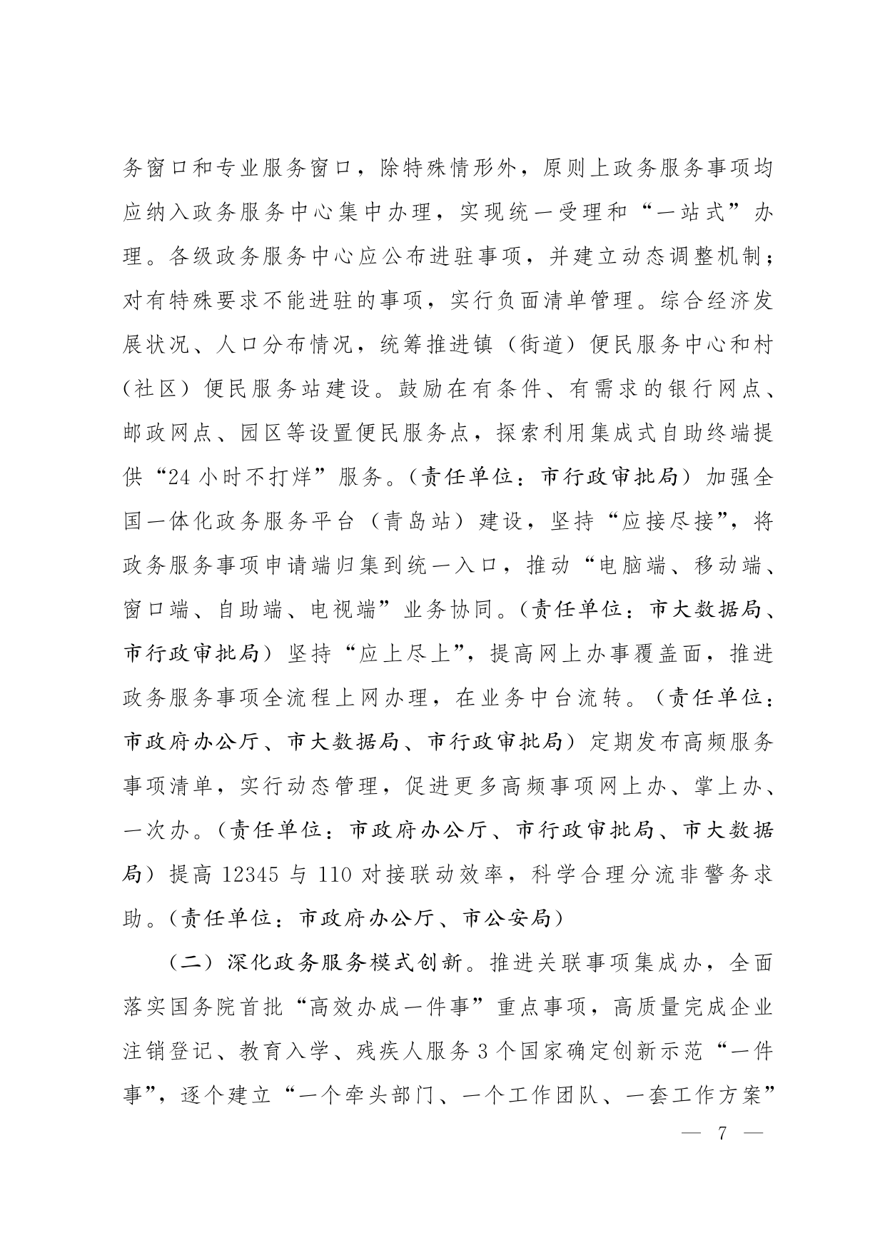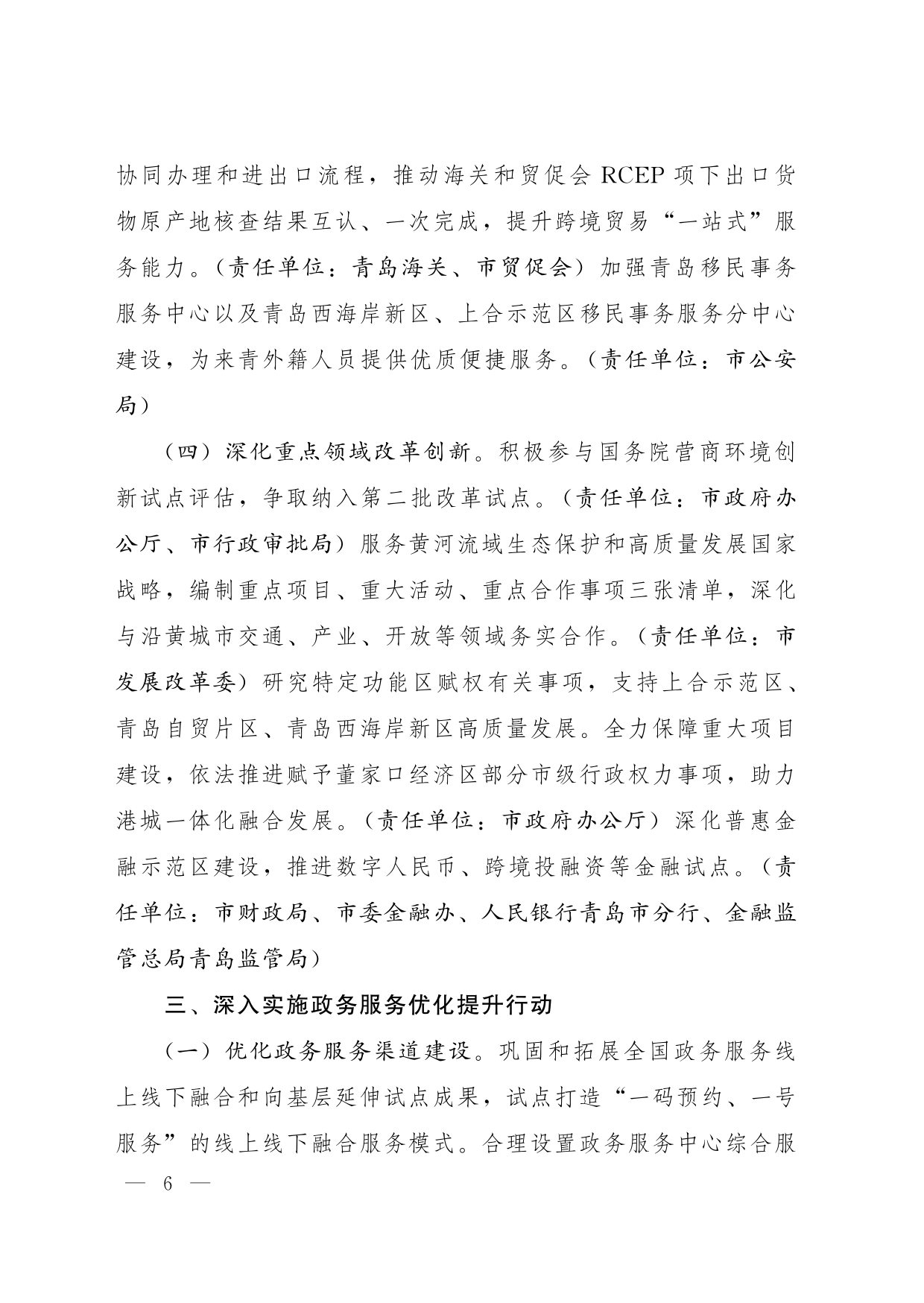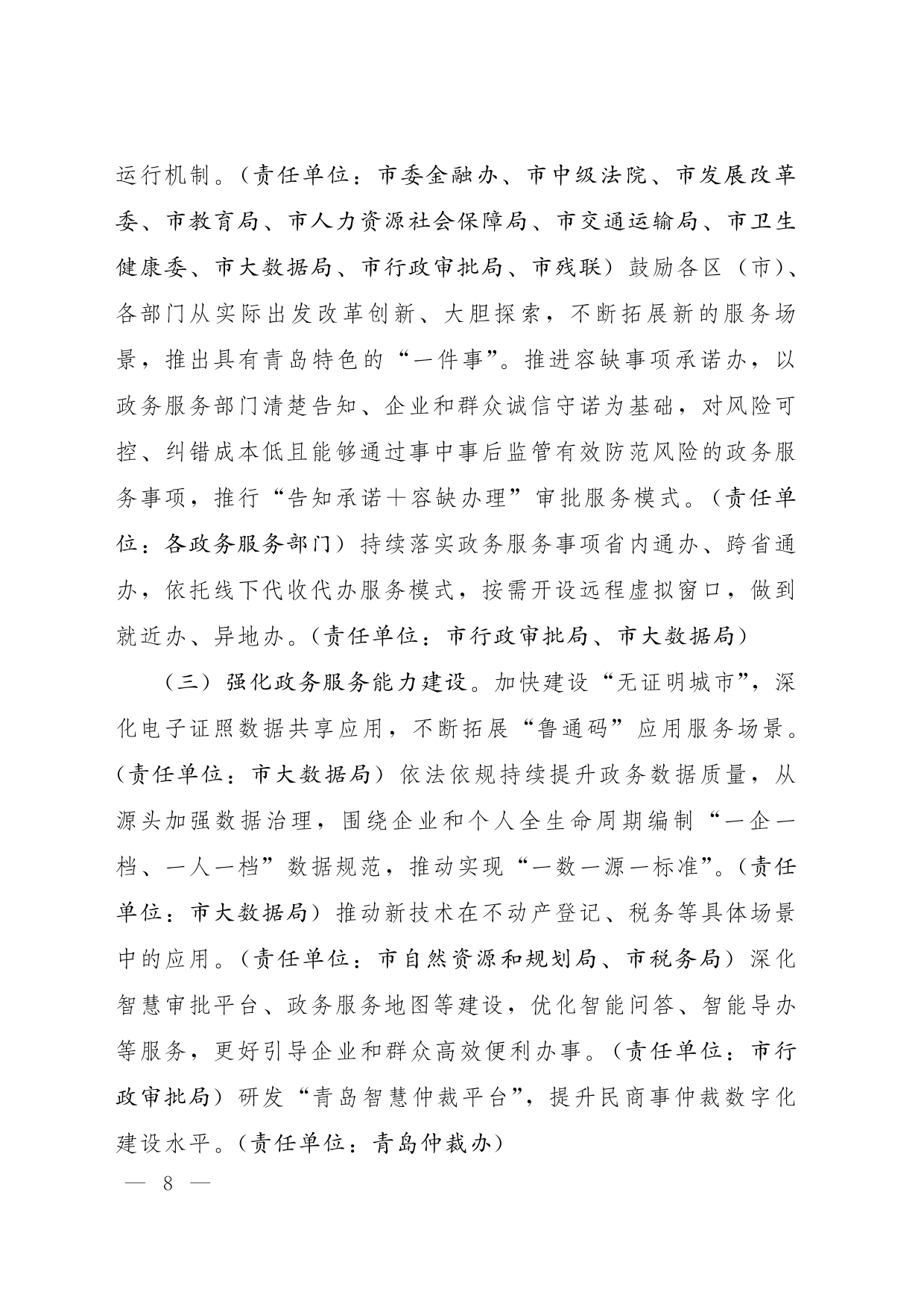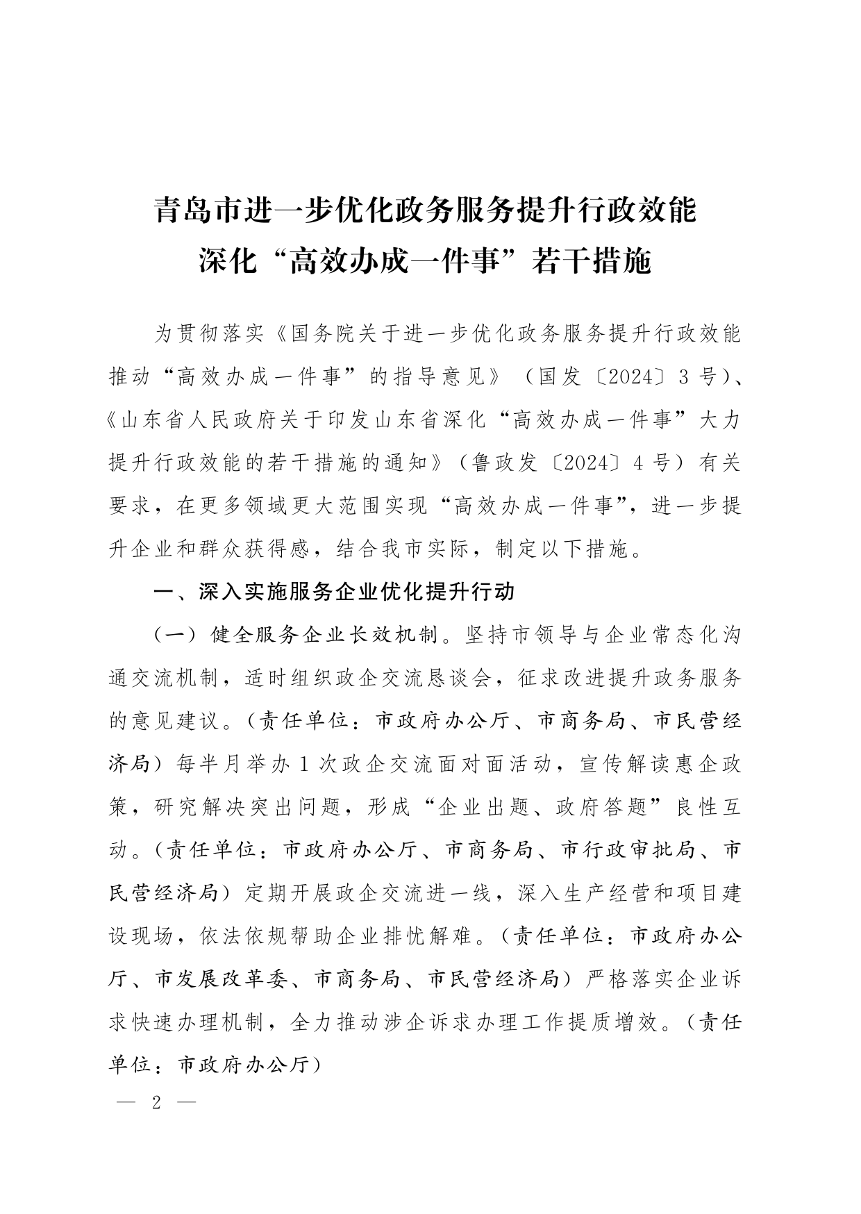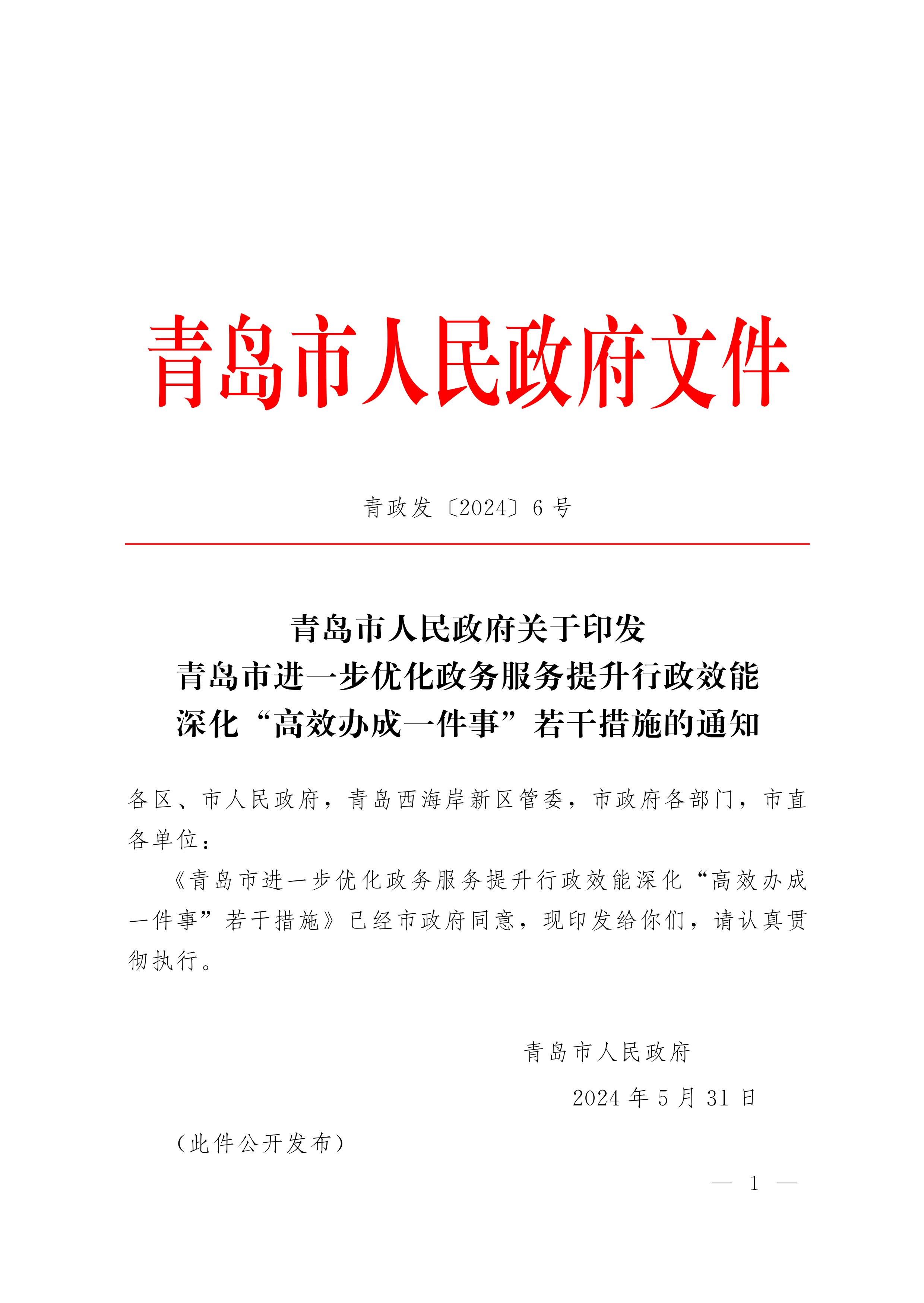 青島市人民政府 關(guān)于印發(fā)青島市進(jìn)一步優(yōu)化政務(wù)服務(wù)提升行政效能深化“高效辦成一件事”若干措施的通知